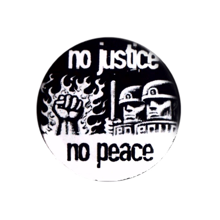 No justice no peace Drooker-Button